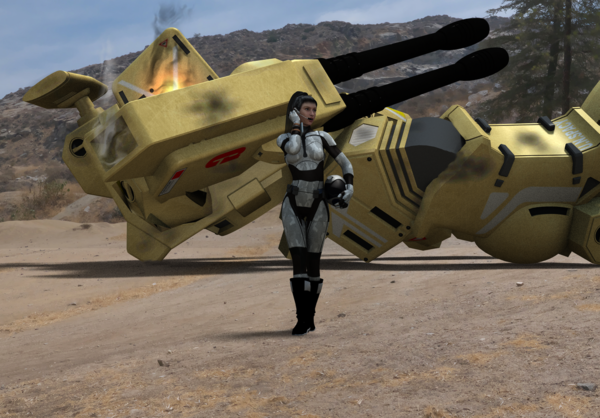 Replaced first image with one that I actually set the mech on fire, well I used a light source to show fie better. I also added a spot light to light her face better.