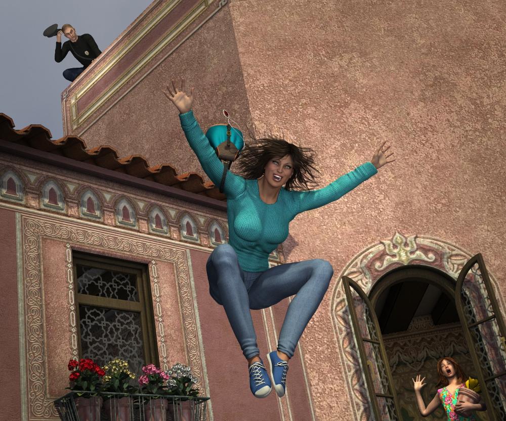 New version with dramatic camera angle and additional story - note the stolen necklace hanging from the bag and the perplexed cop.  I used M6 Uniforms and found a badge on Share CG.