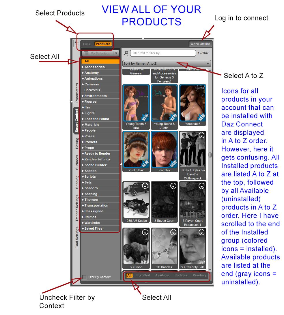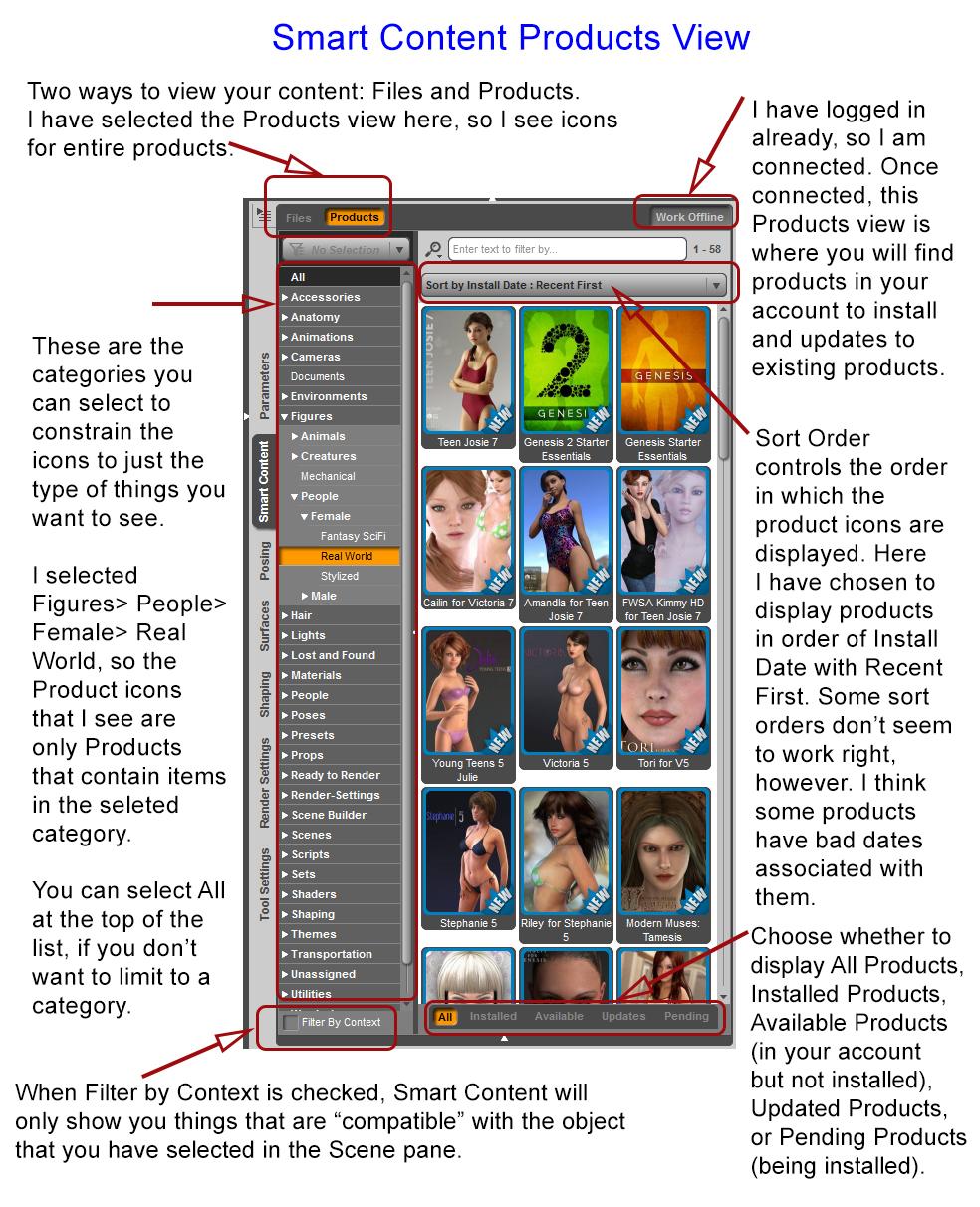 To be honest DAZ's move to support only smart content when using connect drives me mad: In the former releases of Studio I categorized all installed stuff in my own created categories in the content library. I had to do it every time I installed a new product. This system is not vendor aware thus stuff bought from DAZ can be mixed with stuff coming from elsewhere. It also doesn't use any metadata nor does it need to move files around.