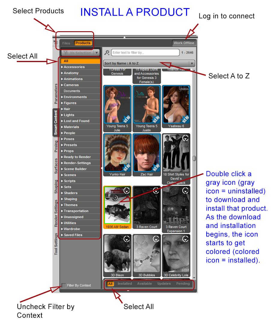 Ok. That is what I guessed. To do that you need a DAZ packaged product. Won't work with non DAZ products unless you can provide metadata and package the product.