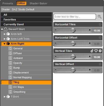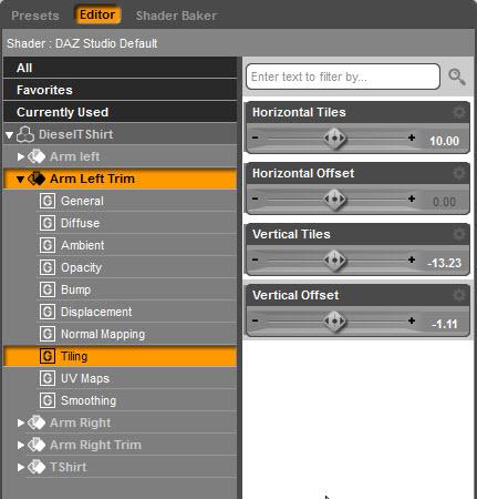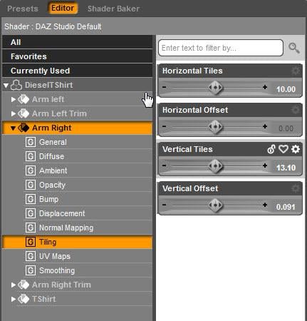 2. The tiling on the trim is different than the tiling on the shoulders. As we did for the sleeves, adjust Vertical Tiling and Vertical Offset to make the stripes the same width as the sleeve and align the stripes. The image below shows the values I used.