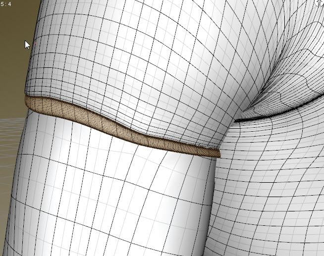 5. If you accidently select polygons on the sleeve (see image above), you can remove them from the selection by holding down the Alt key, holding down the left mouse button, and clicking on or dragging the mouse cursor over the undesired polygons.