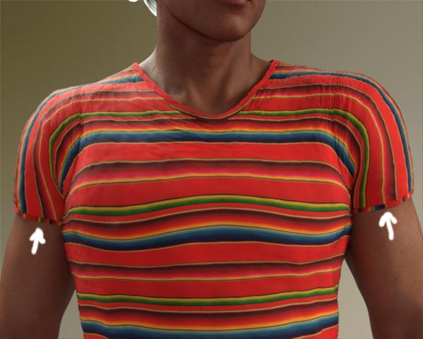 This tutorial will show how to add a new surface and then adjust the texture on a t-shirt in Daz Studio. This particular t-shirt comes with only a white texture. If you add a shader to it, you'll find that the pattern on the shoulder does not line up with the torso. For some patterns it won't be much of a concern, but for one with horizontal stripes, it can look off.