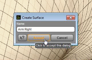 11. In the popup window, name the surface (I used "Arm Right") and click Accept. You now have a new surface that is separate from the torso.