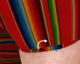 3. The trim on the two sleeves map differently: the trim on the left sleeve has the shading of the stripes inverted (in image below, the yellow to red stripe on the sleeve becomes a red to yellow stripe on the trim; the green stripe is to the right of the blue stripe on the sleeve, it's to the right on the trim).