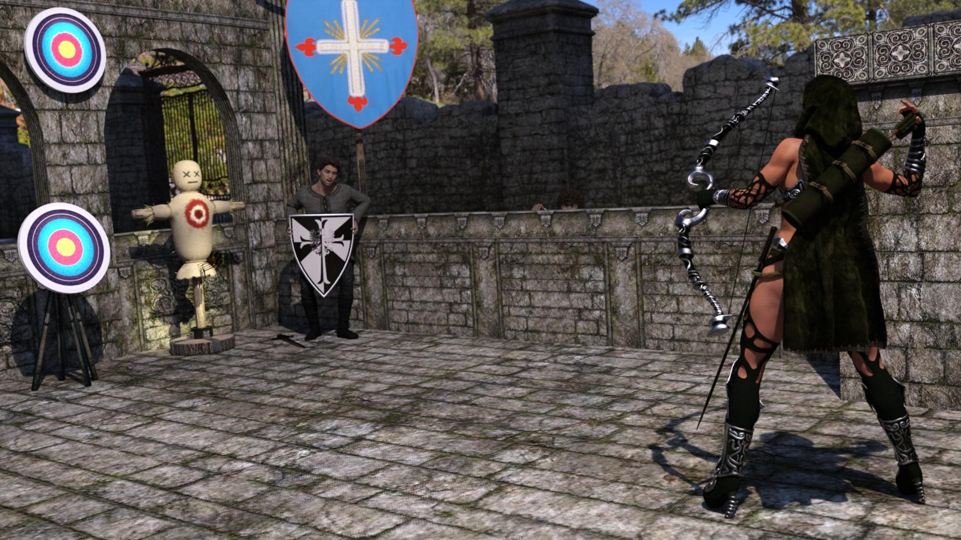 "When Aiden took the job as arrow boy he thought it was going to be a cake walk...after all who could miss at that range...but that was before he saw how ditsy Kelly was with the bow!" (Gopherus)