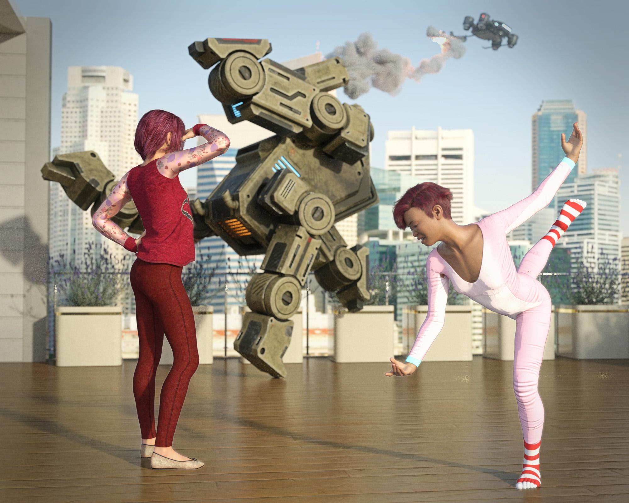 Mari's father bought her a robot to prevent kidnappings and other unpleasantness. In order to lessen the preemptory strikes against spy drones, Mari tried to distract it by teaching it to dance with her when she practiced on the patio. The quad proved to be both graceful and lethal though, dancing and protecting simultaneously.