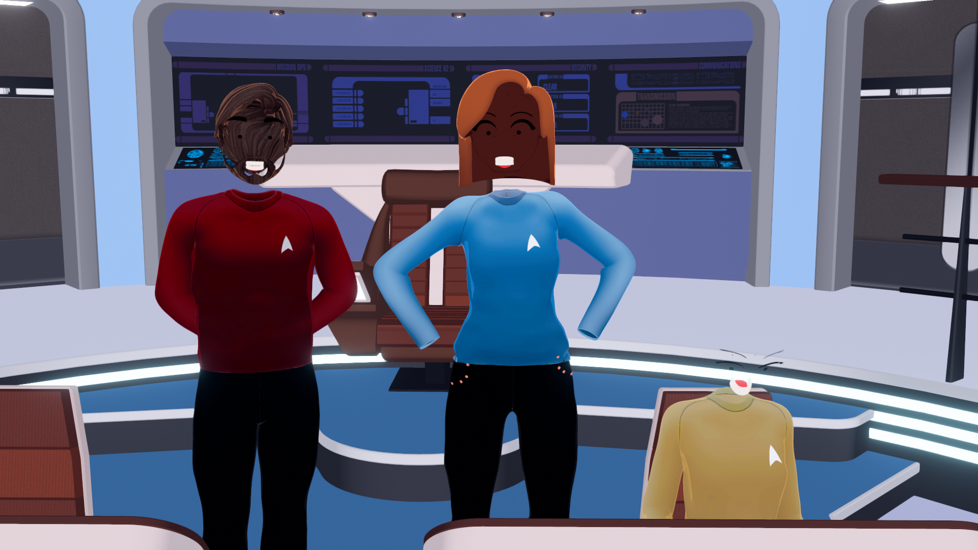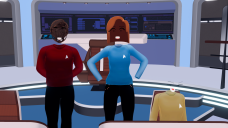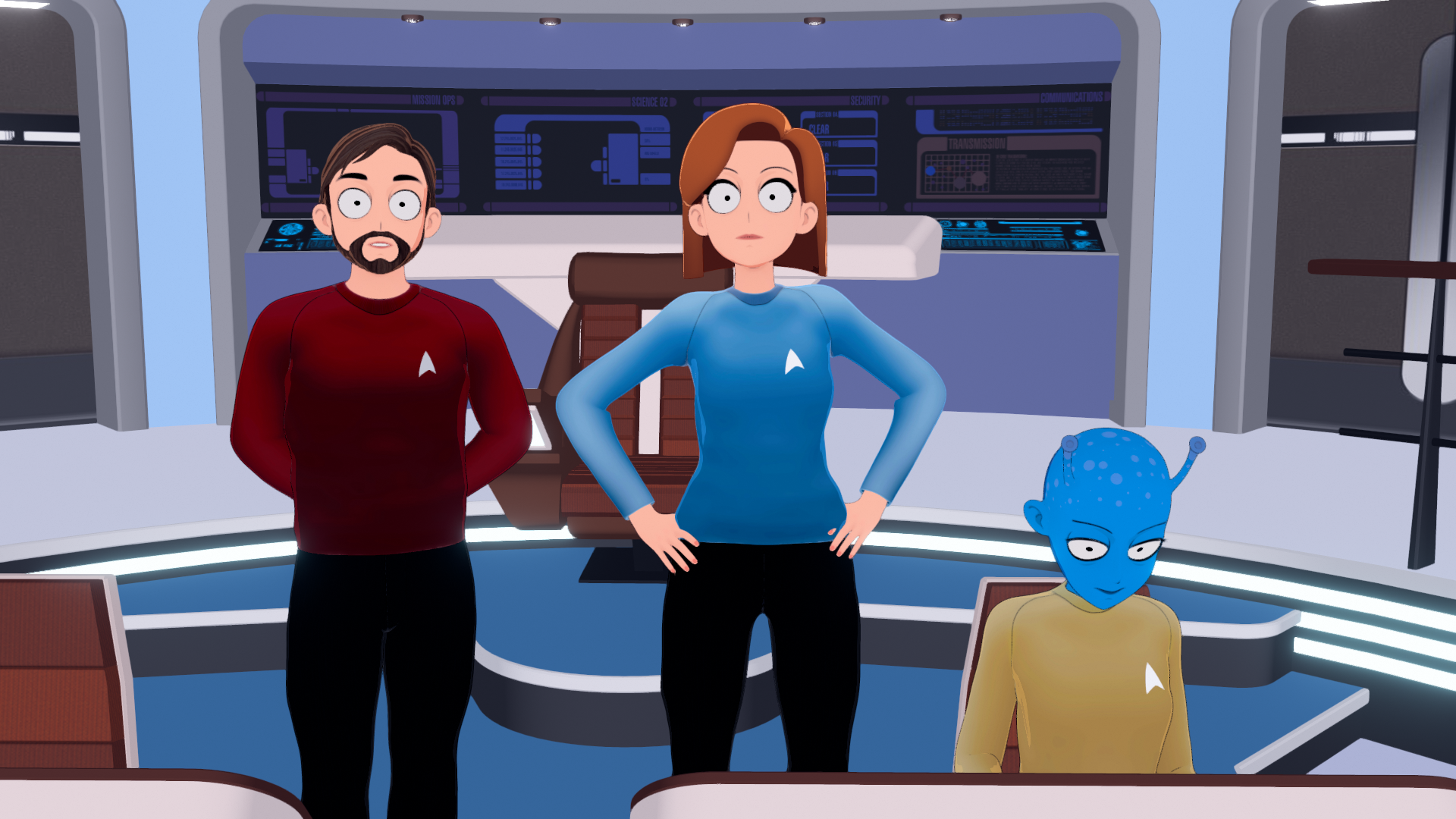 Created a file with three Genesis 9 figures (with hair and clothing) on a Vanishingpoint starship bridge.