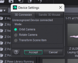 You can find the 3D-Mouse in EDIT menu and Device Setttings sub-menu.
