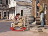Posse Man 1: Hey, Boss, there's a dude outside who wants to join the posse. He has a horse and says he's good with a gun, but left it home. I seen the horse and it seems not skittish at all. The guy is terrible short and the horse is puny, too - maybe a pony. You know I ain't got good eyesight, but I could swear he was wearing jammies.