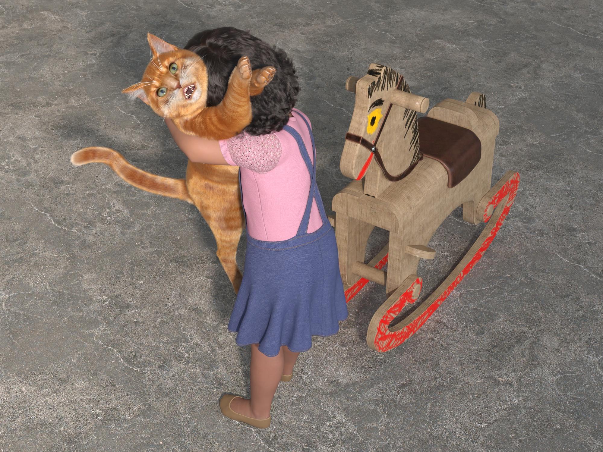 Milly grabs Richard and gives him a huge hug. Richard tries to purr in response, but Milly has hugged all the air out of his lungs.