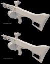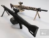 The machinegun is also fully rigged, so it has: folding bipod, folding iron sights, working carry handle, trigger and safety and also optics and magazine can be hidden.