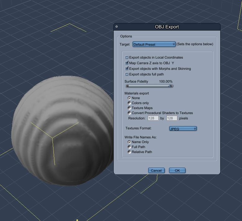 that said, if Carrara cannot cope with the displaced mesh done there, it will not load the exported obj either