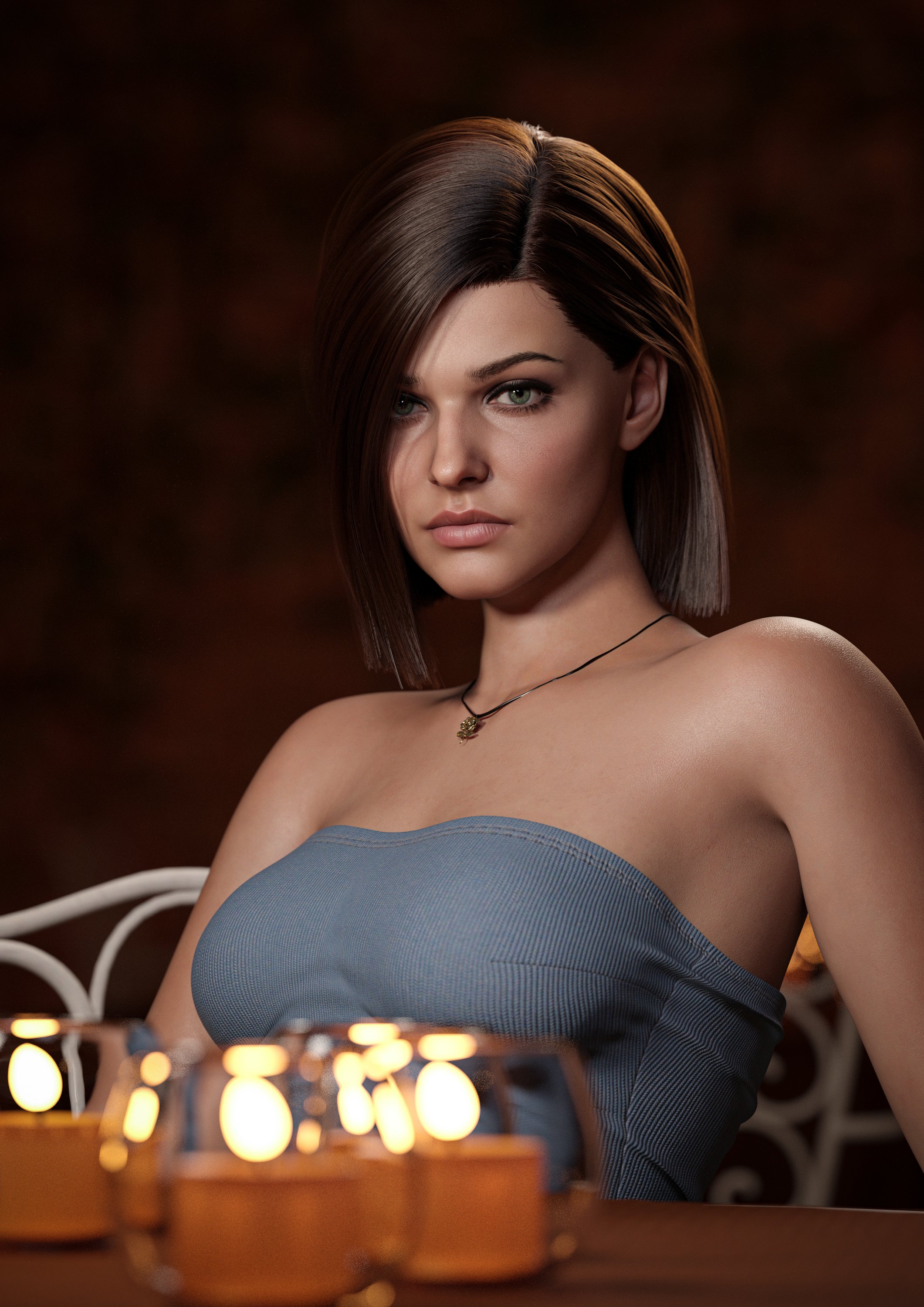 Hello, the girl featured in the main promo image for Faidra Hair is a blend of several characters. The specific dial settings are as follows: