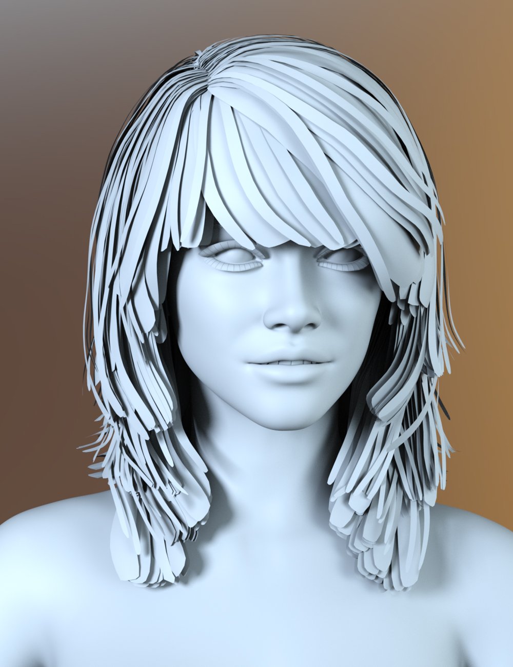 The hair models for polygon hair tend to be made up in many strips, as shown in the clay render image below: