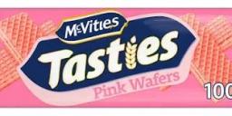 In the UK we really only have 'Pink Wafers' in this style of biscuit (that I've seen). No brown, no yellow. Only pink. Huh.