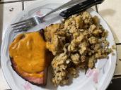 So our breakfast was early, I just ate lunch, and have my doctor's appointment in less than an hour. I had hoped to report a really good weight loss, but someone decided to make beans and rice along with chicken stuffed enchiladas last Sunday. I put weight on, not off. And it messed up what I was going to make for Thanksgiving, New Meixcan stacked enchiladas. So I shifted to microwave T-bird dinner stuff. Not bad, not great. I ate about a tablespoon worth of it. Flatmate went back for seconds.