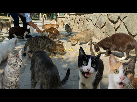 it looks like she is feeding them french fries, thats not good for a cat, they are simply eating it because they are starving, but it will kill them. she might as well feed them poison. what a stupid woman.
