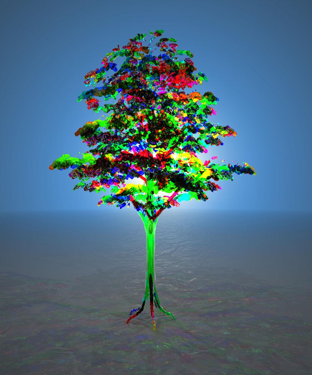 For my second entry I used the option to export the tree leaves as metaballs, then re-imported the tree. There are 14 different meshes which I coloured.