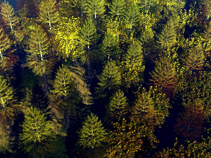 This is one I am stil working on. Its all Bryce trees using instancing. The sun is turned off with one very thin and wide spot light.