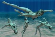 I generally prefer to use G8F, and have only just tried out G2F, which is where the poses for the first post in this thread came from. Now, I couldn't leave my favourite character unable to go swimming, so I converted the G2F poses to G8F and took advantage of G8F's better shoulder rigging to get two poses exactly as I originally envisaged.
