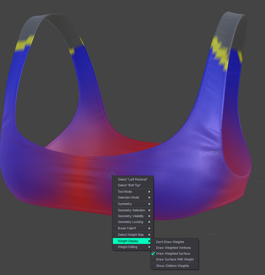 I'm trying to edit my weight map, but I can't see the blue and red that indicate the intensity of the weight map.