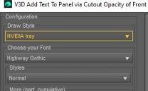 - load the zBonus free writing panel, and write your "words" in italic (hide the little helper prop saying your panel is around me) using the second script (opacity). Place this panel so that "your sentence goes on" (this panel is text and only text, nothing else is visible)