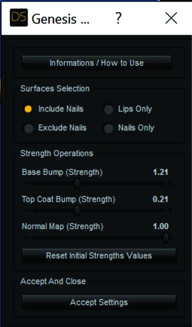 Be sure and open this manager and read the suggestions on the settings for both of these. This vendor has REALLY gone above and beyond to help you. Keep in mind, this product is NOT complicated. You can simply click the presets and see what they do out in the viewport. This is designed for new users, and those who want more advanced control, but even new users can click and explore until they get their desired results! If you look at the icons, you can click on those and increase or decrease the glossy features and the layered weight, step by step. No going to Surfaces and moving sliders!