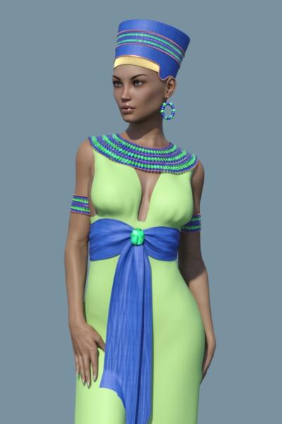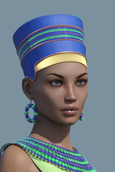I darkened the outfit a bit (and also the reflective to a bit darker gray) because I'm not changing my lights (same ones I used on Dayanara.) I used one of the shaders that comes with the outfit, for the head band section (the gold. Otherwise, it was white) Zoe is very regal / sophisticated, but smiling she would look more approachable. Lovely skin.