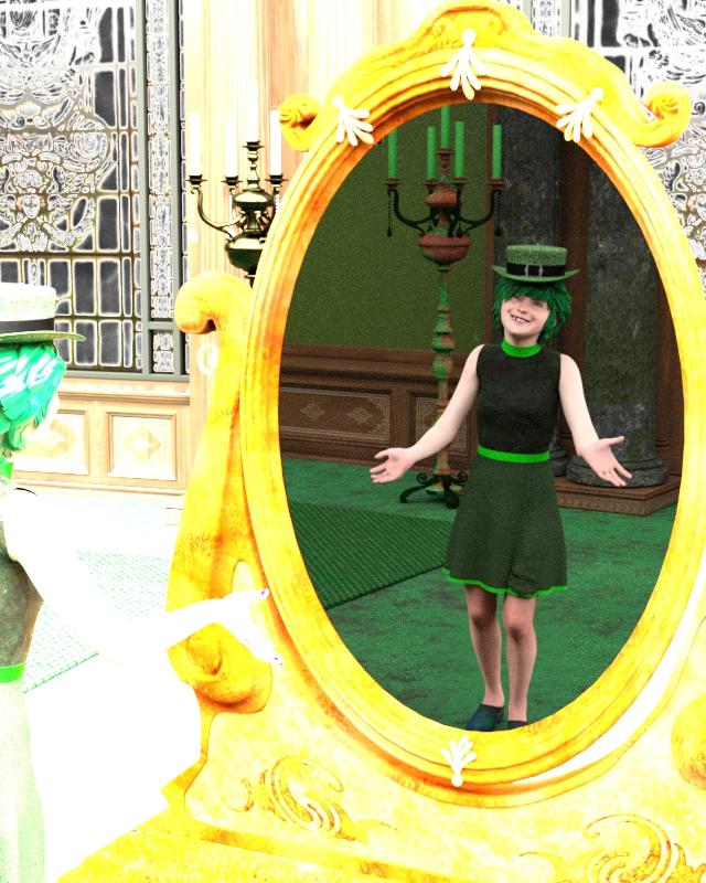 In case it's helpful to others, thought I'd show how I made an image that was partially rendered with 3DL and partially with Iray. It's an interior scene with a mirror, and I was having trouble getting the right light balance with Iray (more than likely from my inexperience than anything else). I was using Mec4D's St. Patrick day Iray shaders, so needed Iray to show them off.