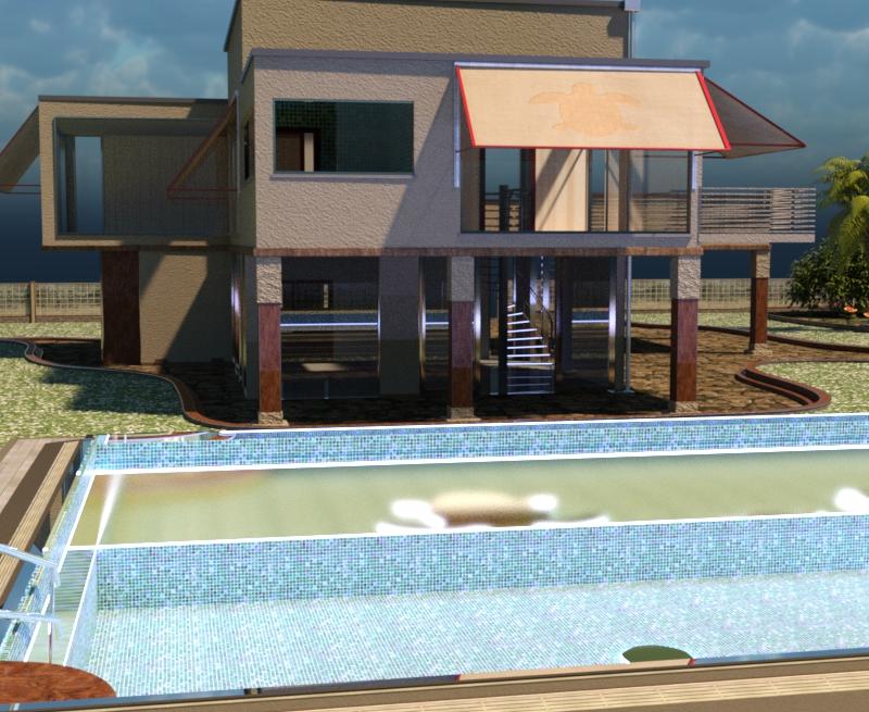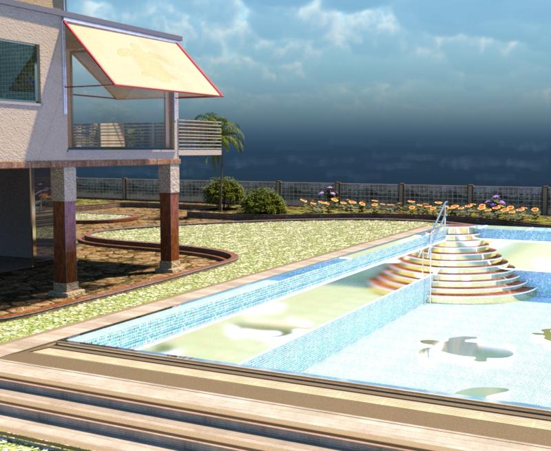 (This is not, repeat NOT my typical render, for people new to the thread. This is showing you how the pool looks, using the SAME lighting as the house.) Read below.