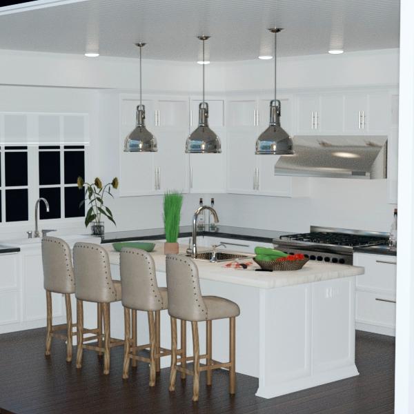 In that Group, some of the items won't have Cutout Opacity (like the backsplash, stove, etc) so with everything selected with the Surface Tool, in Surfaces (EXCEPT FLOOR, just to be sure it matches the other one, don't mess with it!) apply the Iray Uber so you can put Cutout Opacity to zero for everything except the floor. Bingo. All this should take you about 3 minutes max. Those floors are nice, you could add another Modern Kitchen to both sides of your extended plane and build a home or add a living room, etc. And shader the kitchen walls to match if you prefer. I can see adding a dining area there with the kitchen.