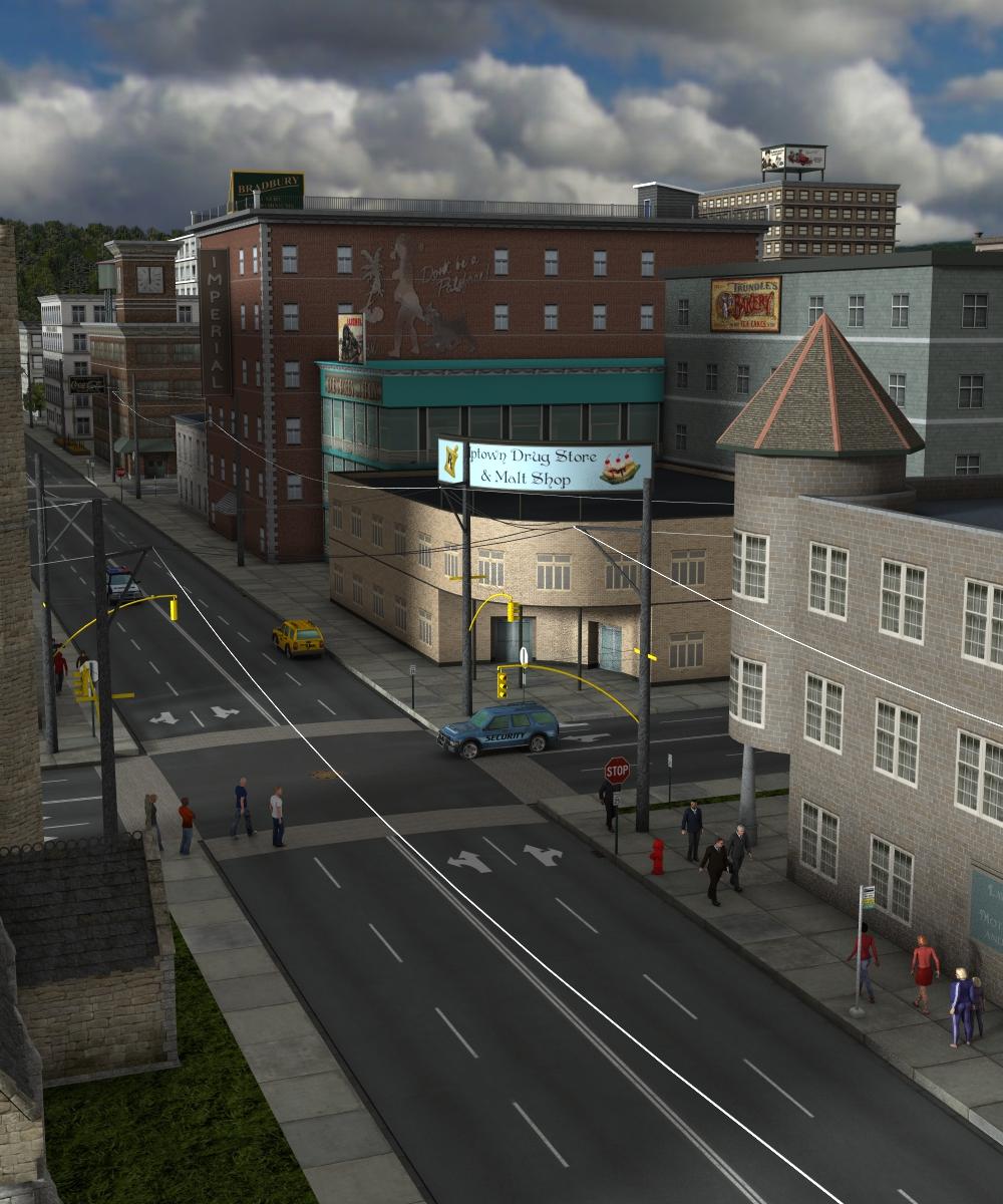Very nice! I haven't used Poser, any chance you can describe the prep work needed to use these in Daz Studio? I've only used one Poser prop, and fortunately it was just double-click like I'm used to in DS. Also like the Coppertone girl and dog advertisement on that dark brown building!