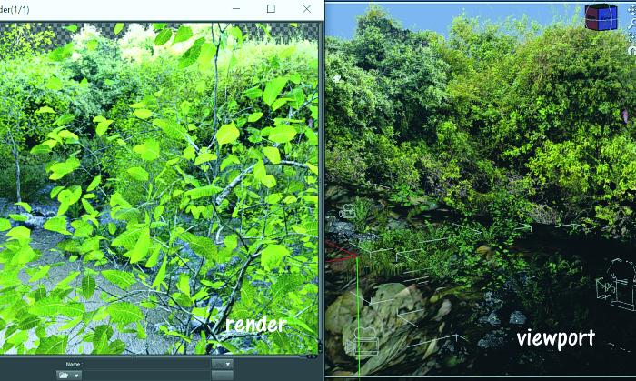 And this shows the problem with those instances. I have a tree blocking the view completely, on the right, that does not show up in the viewport. Nasty surprise!