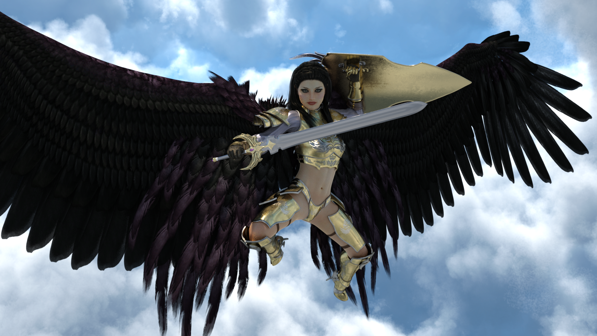 Here's a quick render I did for the RNDA bundle thread. Lighting needs tweaking, those Malaik wings cast a lot of shadows. I need to shade them for Iray too. This is LY Fallon (picture is much bigger if you click below.)