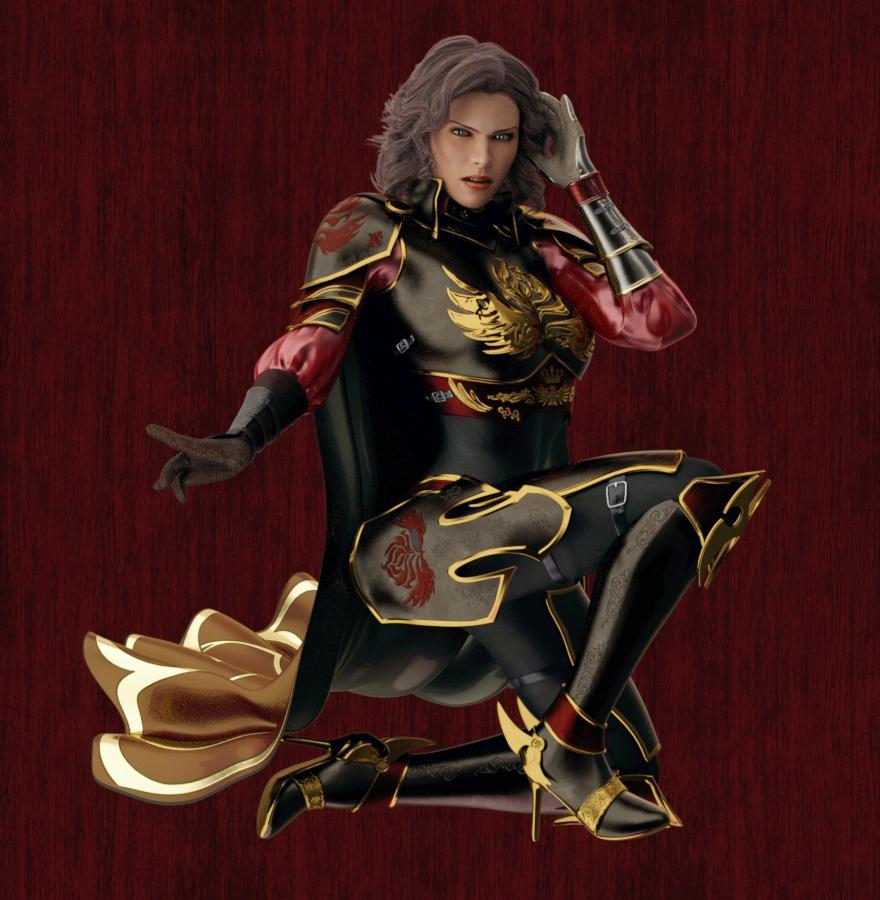 Note, the pauldrons do not stay with the outfit when you pose Gen3F, at least on the sets I tried. What to do if clothing doesn't follow the pose- select the article of clothing and apply the pose to it, just like you did the character. The clothing usually falls in to place!