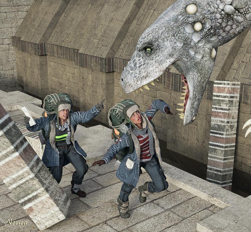 BTW- here's a tip that I may have posted at the time- remember to change the background building color if it is the same as your main character (dragon.) Those walls of the temple were a gray, just like the dragon, so they were made brown in Surfaces>Diffuse. Now the dragon stands out nicely!