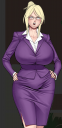 Ideally it would be a perfect match; the hair would have the bun situated at the top of the head with the hair parted to the sides, a standard dress shirt underneath the blouse with the initial collar above the blouse's while buttoned up almost all the way with both items of clothing having a notched collar, and the skirt with slits on the legs. The only item I'm not to stringent on is the glasses, anything similar will suffice.
