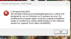 My carrara was getting along fine with Windows 11 until the most recent updates. A security feature that blocks add-ons and sub-routines is wreaking havoc on a variety of programs that I have, including Carrara 8.5 Pro. The Windows blocks seem random, but who knows. Here is the most recent obstruction when launching Carrara. Argh. Repeat, Carrara was working fine until recent Windows updates, and these issues are not only Carrara issues.