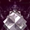 I made a second render of the three cubes. I changed the cubes to different shades of grey and made them partly transparent. I also changed the surrounding object to a pyramid with 1% red diffusion and full reflection. I tilted the floor plane and gave it a 2% blue diffusive colour and 50% reflection + 50% transparency. I also added dome light with positive diffuse and negative specular light. Also a yellow radial light inside the cubes. I rendered with a maximum ray depth of 12 to increase the number of reflections. This render can be called 50 shades of purple and grey.