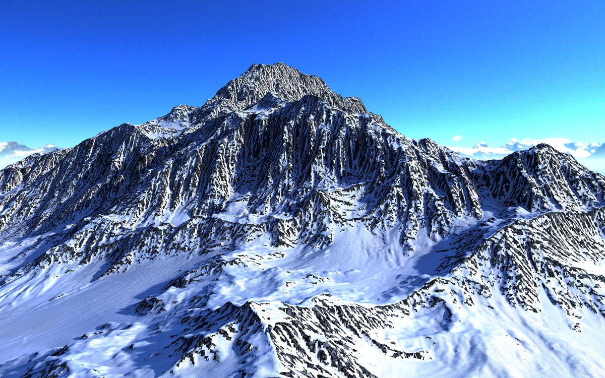 The terrain was self made and given a material from Grand Mountains. Sky, background and ambient light by the Illhorn_SD HDRI from Islands 2 and the key light by the sun. To climb this mountain is a true challenge.