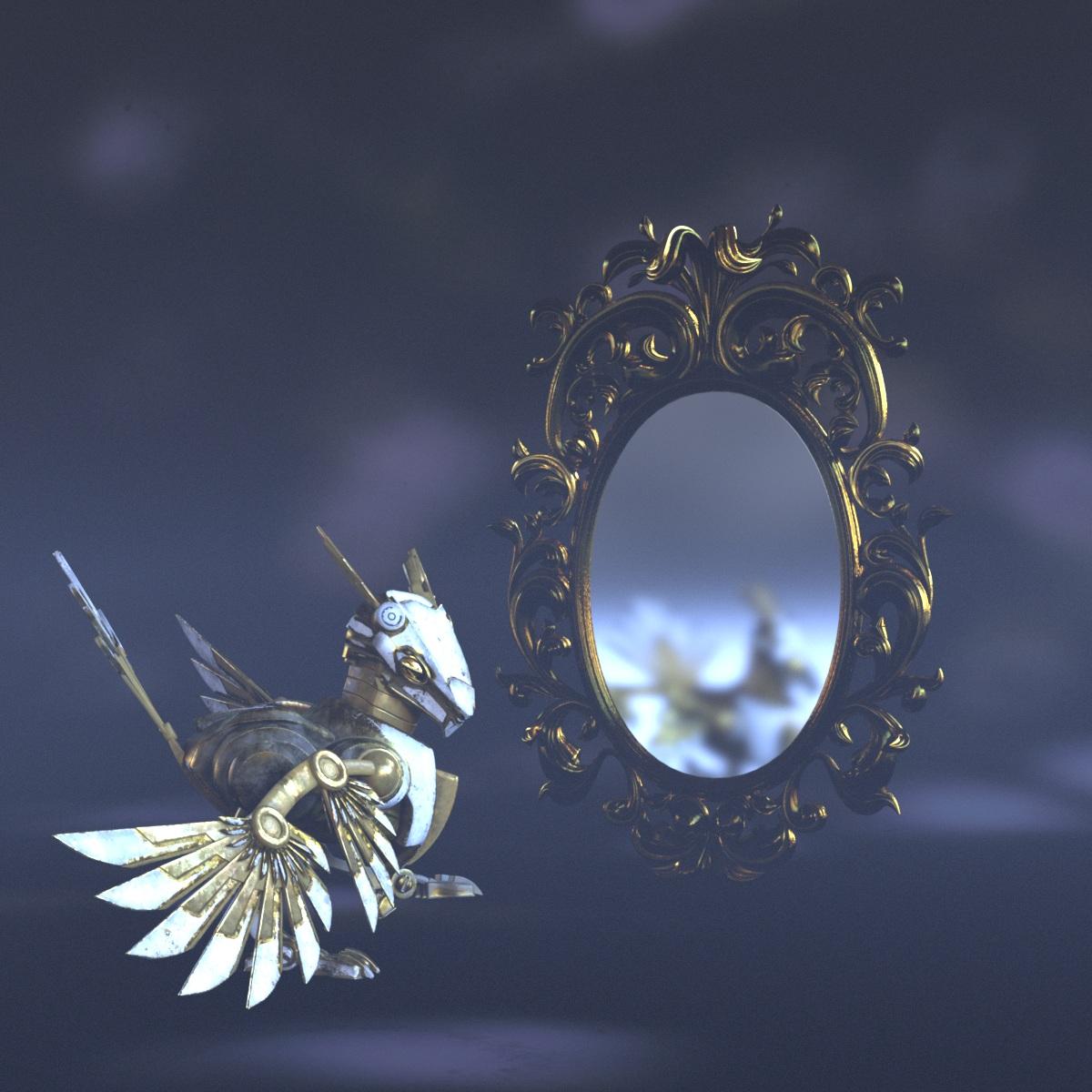 Got some nice mirror. Added https://www.daz3d.com/mech-raptor to the scene in Daz Studio..