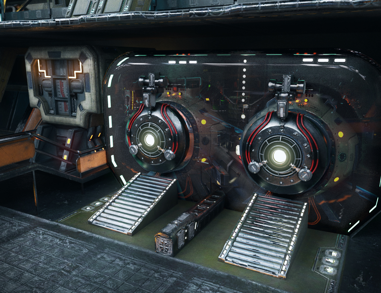 It is a part of a much larger set: XI Exo Suit Hanger. Unfortunately, none of the promo shots show the pod by itself. It doesn't have a hatch, actually, which is rather odd for the vacuum of space.