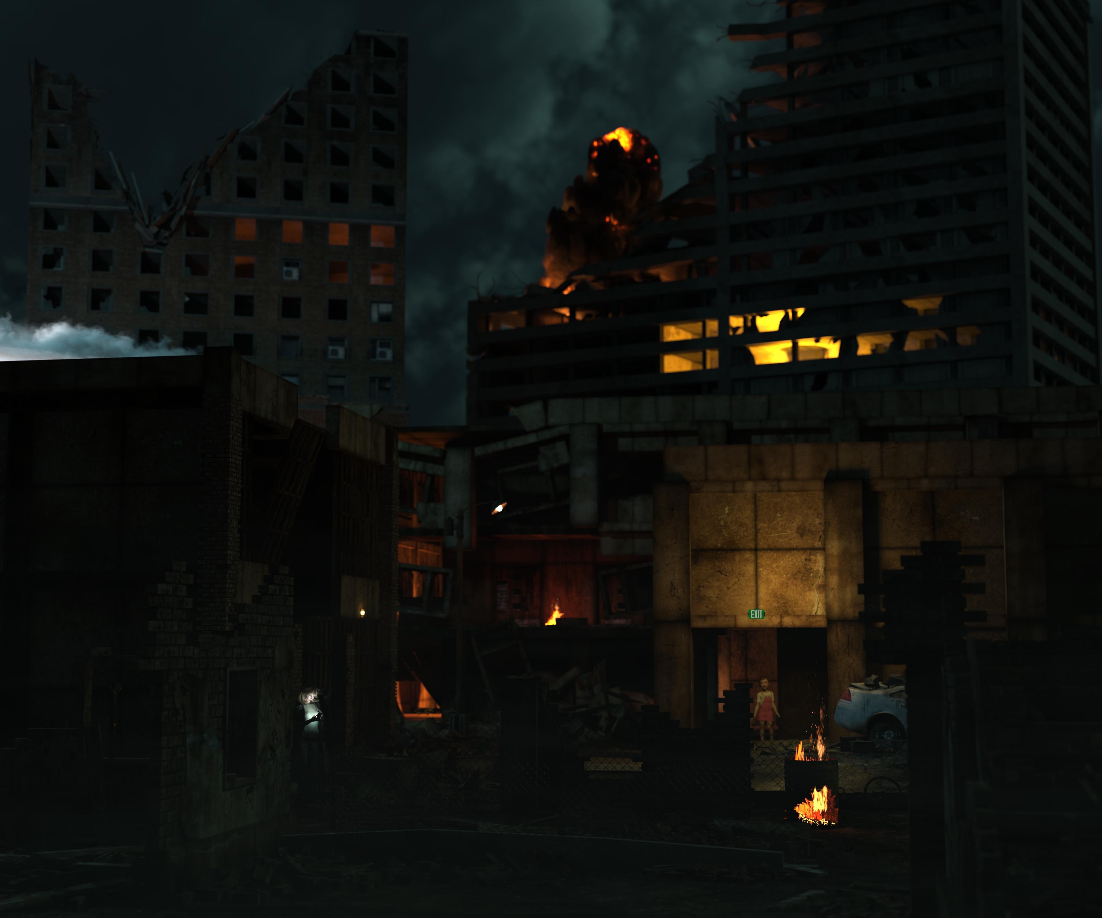 Wow the lighting makes all the difference! The lighter coloring makes the scene stand out much more. You may want to check out whatever is lighting up the fog on the building on the left it's much brighter than the rest of hte clouds etc in the scene.