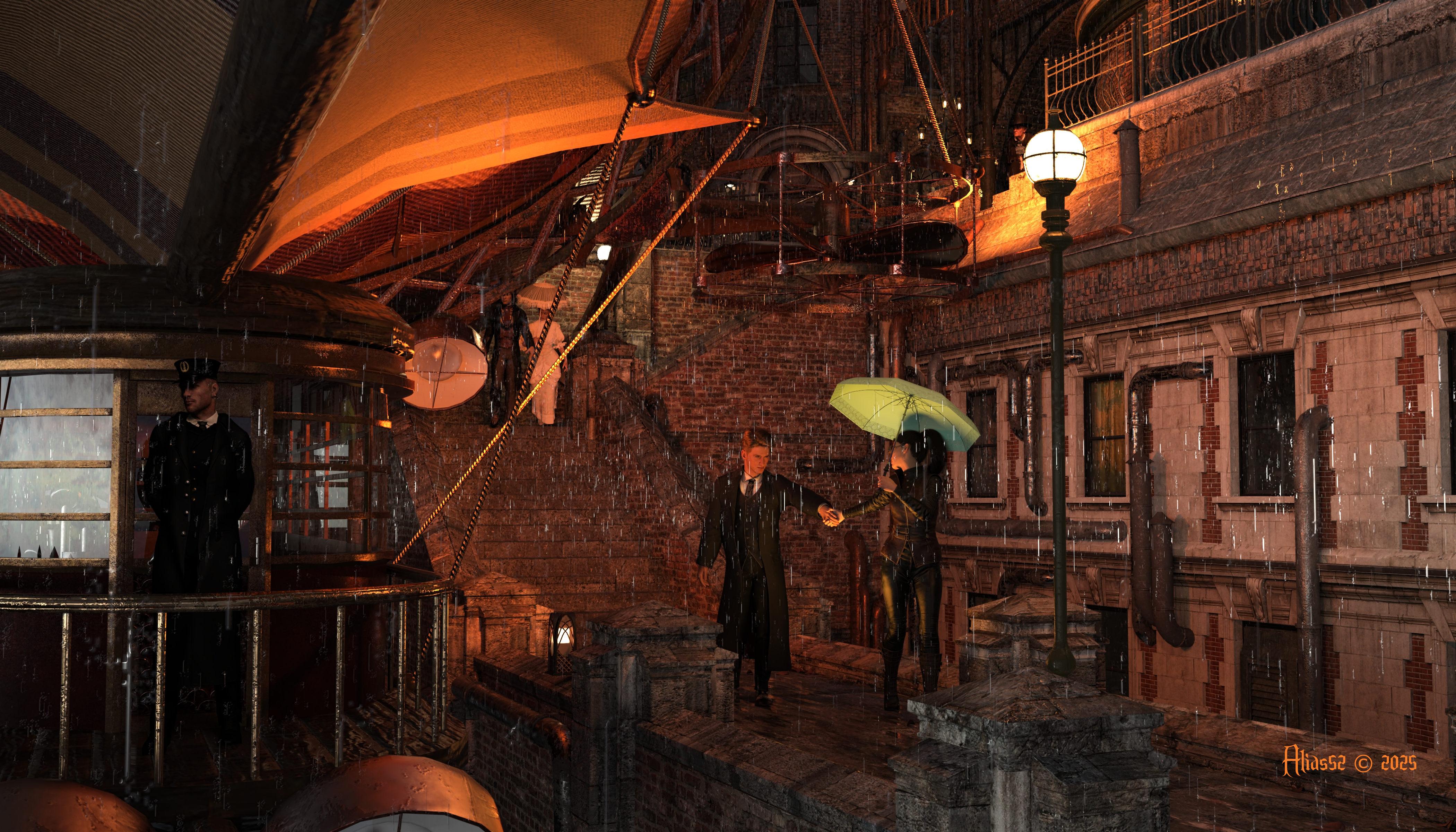 2nd Entry this month. Joys of being a teacher means a lot of time in the Summer! This one I was working on before I made the final version of the other. I just wanted to use some Steampunk resources. I imagined a couple being separated. She looking back and knowing she had to go. He, reluctant to let go and let her leave. There may be more story to be told but I wanted to play with a different night time style of render. I had to add a few extra light sources to try to make sure I didn't make the mistakes of the first!
