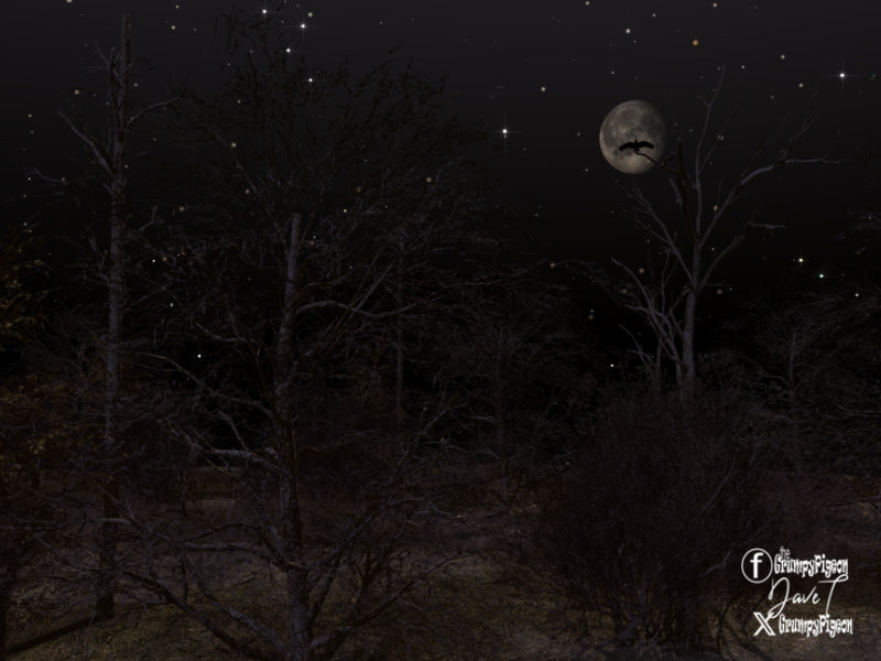 look at the horizon behind the trees. it looks wrong. kinda like the sun is coming up inthe middle of the night. and it's...orange? that's what people with better ey es tell me and i know horizons ain't orange at night cuz i'm not that blind.