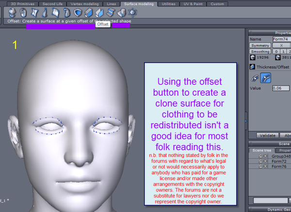 While technically making a copy of an original [anything] is a derivative work etc ... for the sake of clothing and such articles FOR the concerned figure, Daz3d clearly stated permission for us to do that [I have no idea where that page is right now]. They also stated clearly that said permission was NOT for a competitive figure! So keeping that in mind, I will show people the one button in Hexagon which is a no-no for clothing creation. It's not a shrinkwrap but makes an exact copy [like a clone might]. As I had welded Genesis all into one piece, the example shows the entire cloned. But with figures such as V4 which one can keep in groups for making clothing, one could create 'body clothing' or whatever one might call it.
