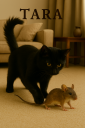 I'd buy the OSO3D Update to the original DAZ Housecat if you haven't already. It's not quite so "cutesy" as your illustrations, but it is a good black cat. Here is a render I made with it: