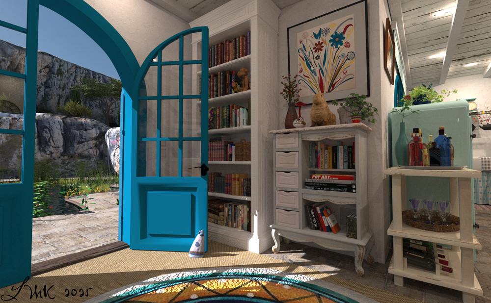 But still not happy so changes. Yes, that is a back door cut into the wall. Plus some rearranging of furniture.