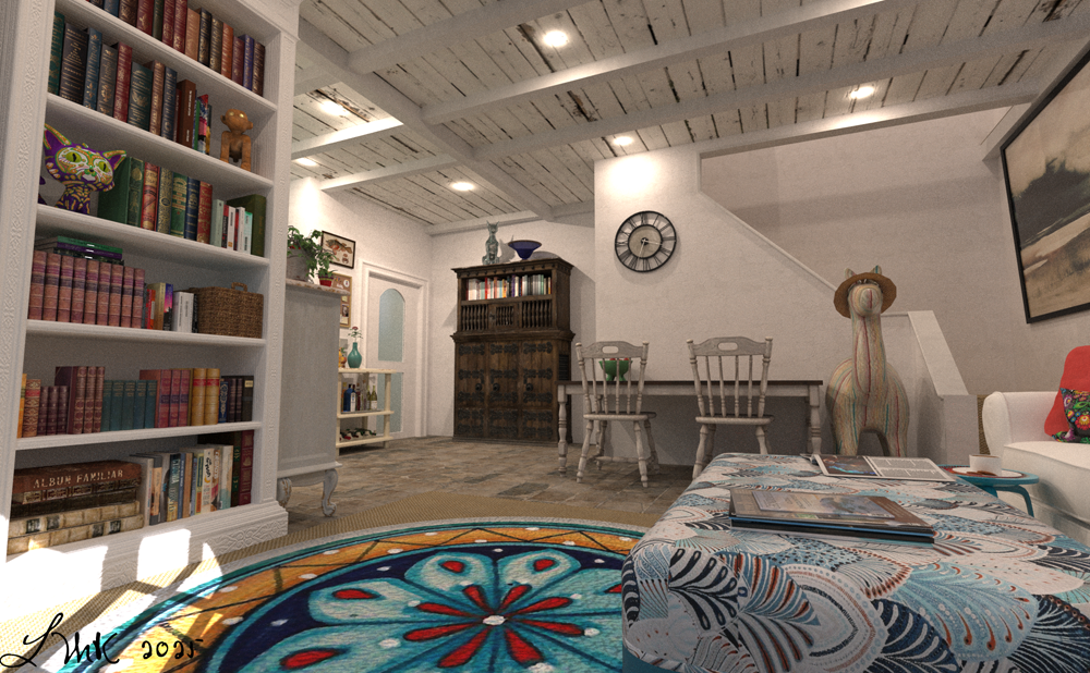 A couple of weeks of being struck down by a lurgy delayed things. This (I think!) is the final iteration of the living room.